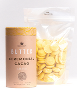 Made only from virgin crop, meaning the first crop of the tree and hand-selected pods. Our cacao butter is fermented and full bean, generated from milling the whole bean into a creamy, rich paste then pressing to separate the cacao mass from the rich butter following ancient traditions.
