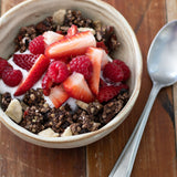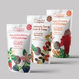 Bountiful Berry & Macadamia Ingredients: Activated nuts and seeds 71% (buckwheat*, sunflower seeds*, macadamia 8%, linseed*), coconut crystals*, currants*, pineapple*, camu camu*, freeze-dried berries* (blackberry, blueberry, strawberry, blackcurrant 2.4%), lemon*, sea salt