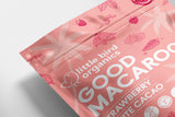 Delicately sweet organic strawberries, creamy white cacao, and chewy coconut combine to bring you the taste of summer all year round.