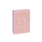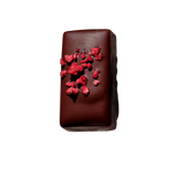 *cacao paste, *coconut blossom sugar, *cacao butter, *tahini (sesame), *coconut oil, sour cherries (apple juice, sunflower oil) (7.2%), *freeze dried raspberries (3.2%), schisandra berry (2%), black cherry oil (0.1%). [Cacao solids 57.7%]. *Organic.