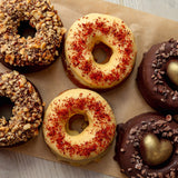 Dreamy chocolate hazelnut donut filled with hazelnut cashew crème, topped with house-made chocolate and finished with roasted hazelnuts.