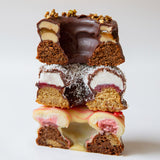 An almond-based donut topped with a spoonful of our house-made raspberry jam, finished with coconut cream and dipped in silky raw chocolate. A classic Kiwi favourite, reimagined.